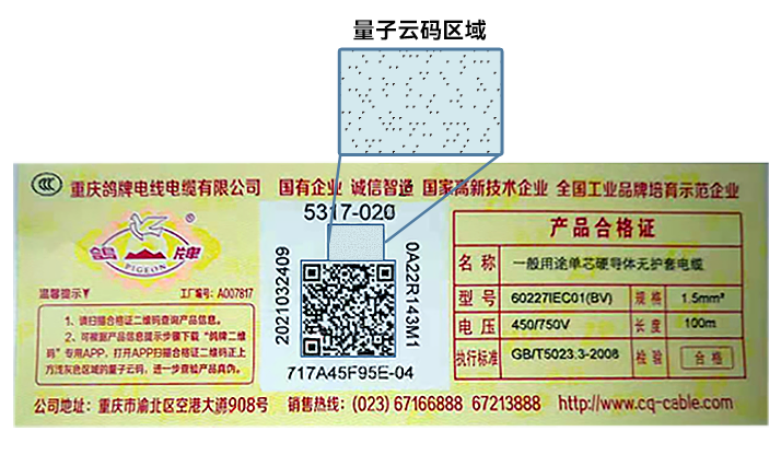 【导读】:量子云码为鸽牌公司创新升级了电线产品合格证及防伪系统,实现一圈一码、产品信息溯源、检验真伪等功能,帮助鸽牌公司精准管控电线产品质量,为民生用电筑起坚实的安全保障。